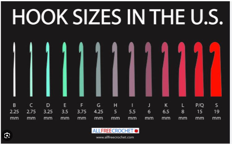 Hook sizes will be listed either by an mm value or a corresponding letter.